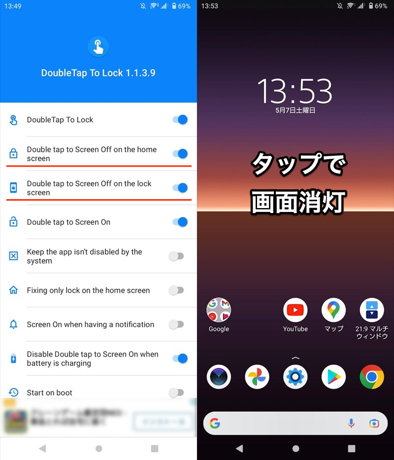 基本上,它仅适用于主屏幕,但有一个不稳定的方面,有时双击任何应用程序都会关闭屏幕。