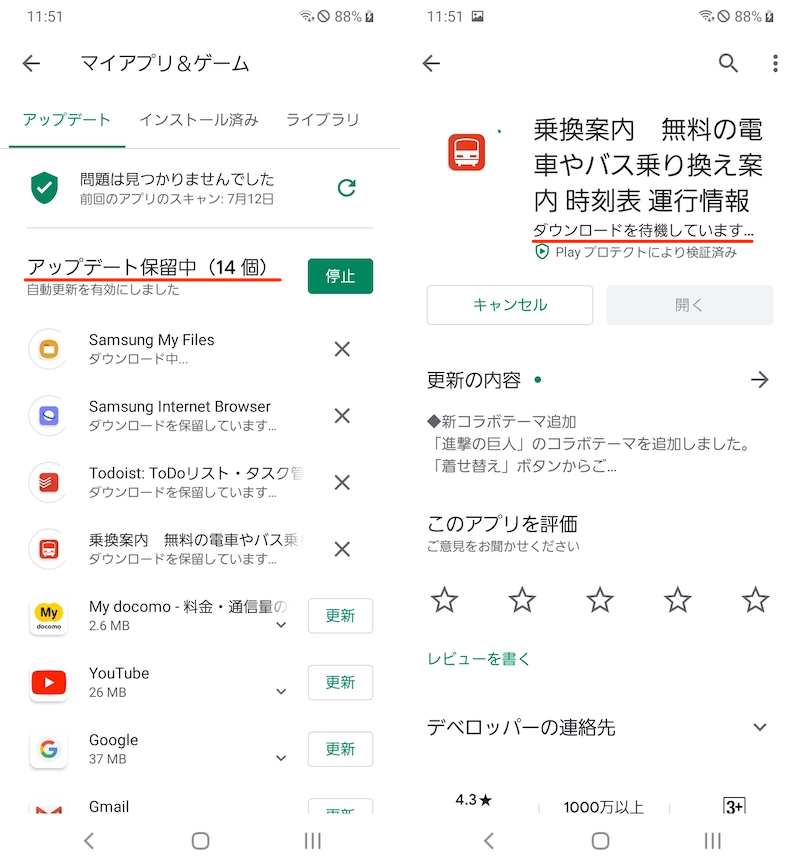 ダウンロードを保留しています ダウンロードを待機しています Playプロテクトにより検証済み