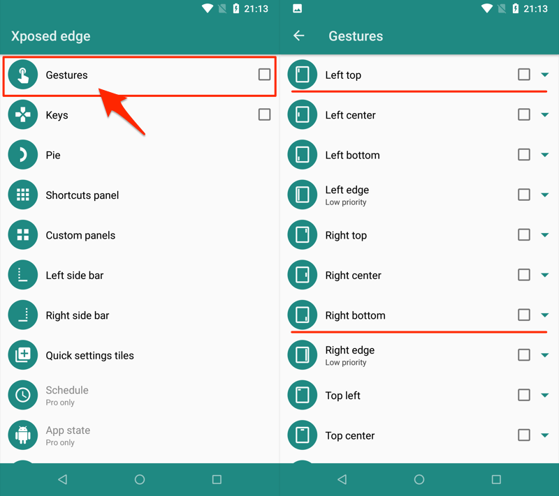 使用 Xposed Edge 注册手势。