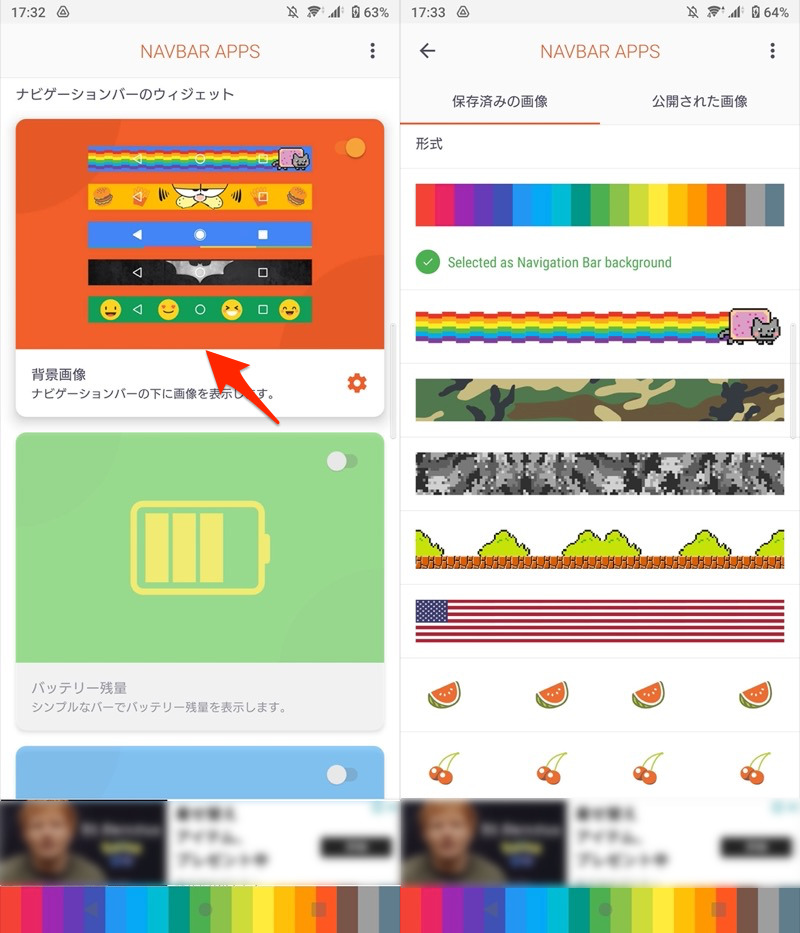 ▼在导航栏上显示电池电量
