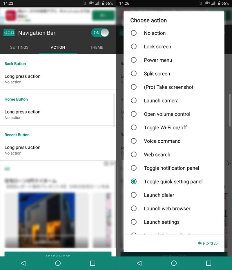 此外,您可以从“ACTION”选项卡自定义按钮(◉Home / ◀Back / ■Recent)长按功能。