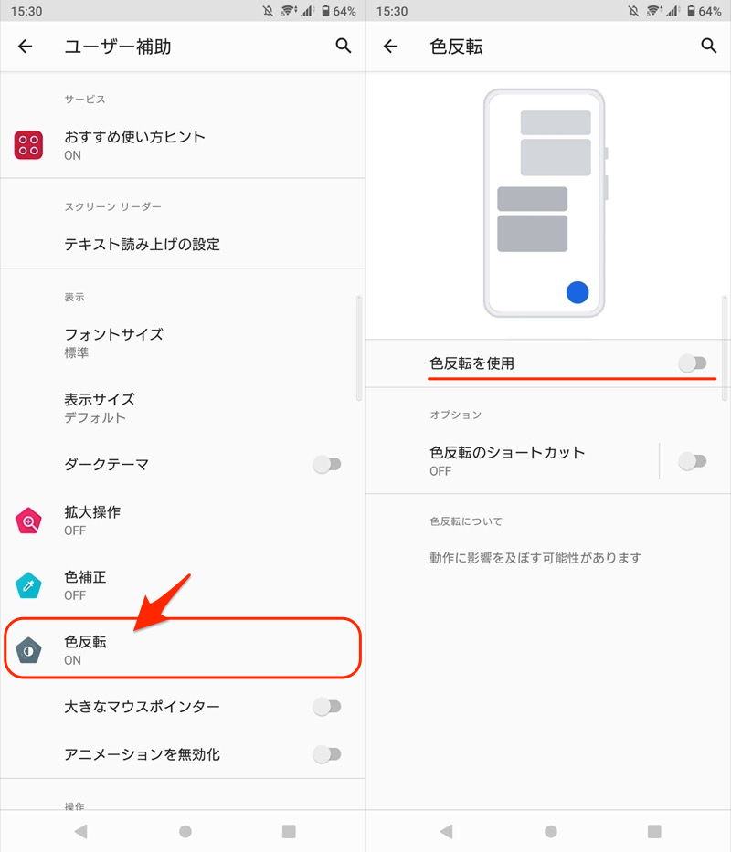 找到颜色反转并将其关闭。