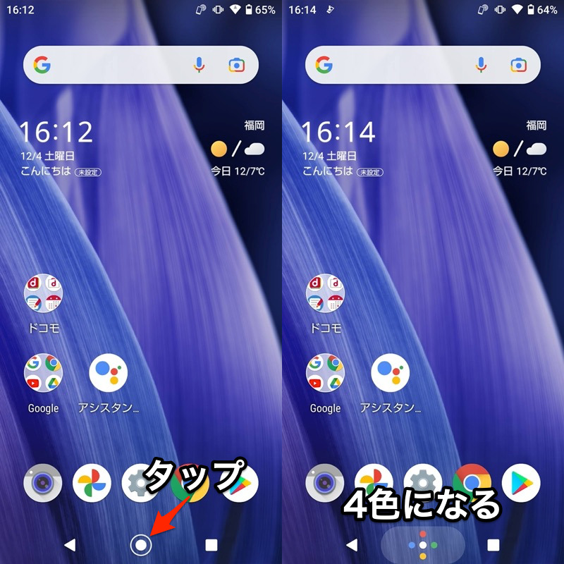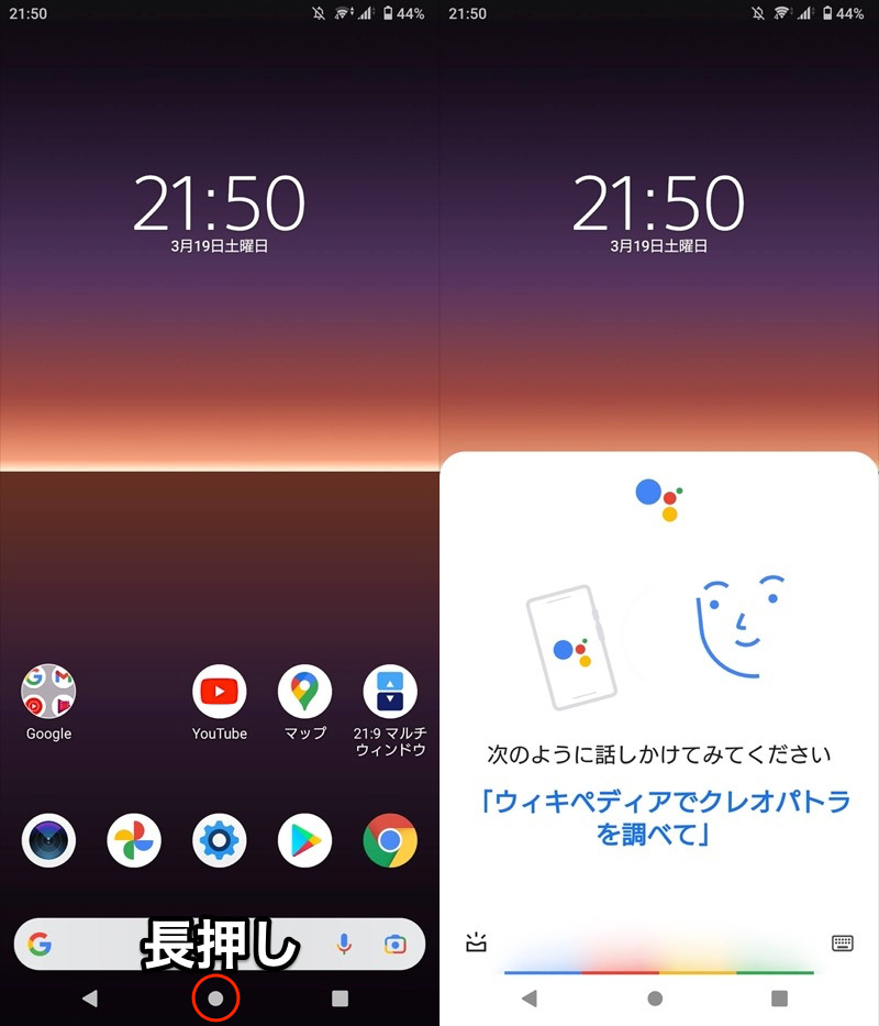 长按主页按钮(左)启动 Google Assistant(右)。