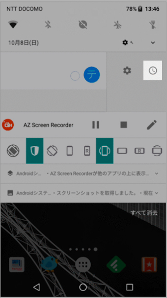 然后,慢慢向左滑动通知。然后隐藏的“齿轮”图标和“时钟”图标就会出现。