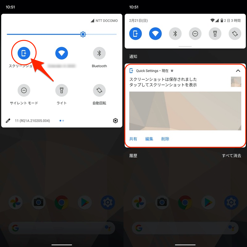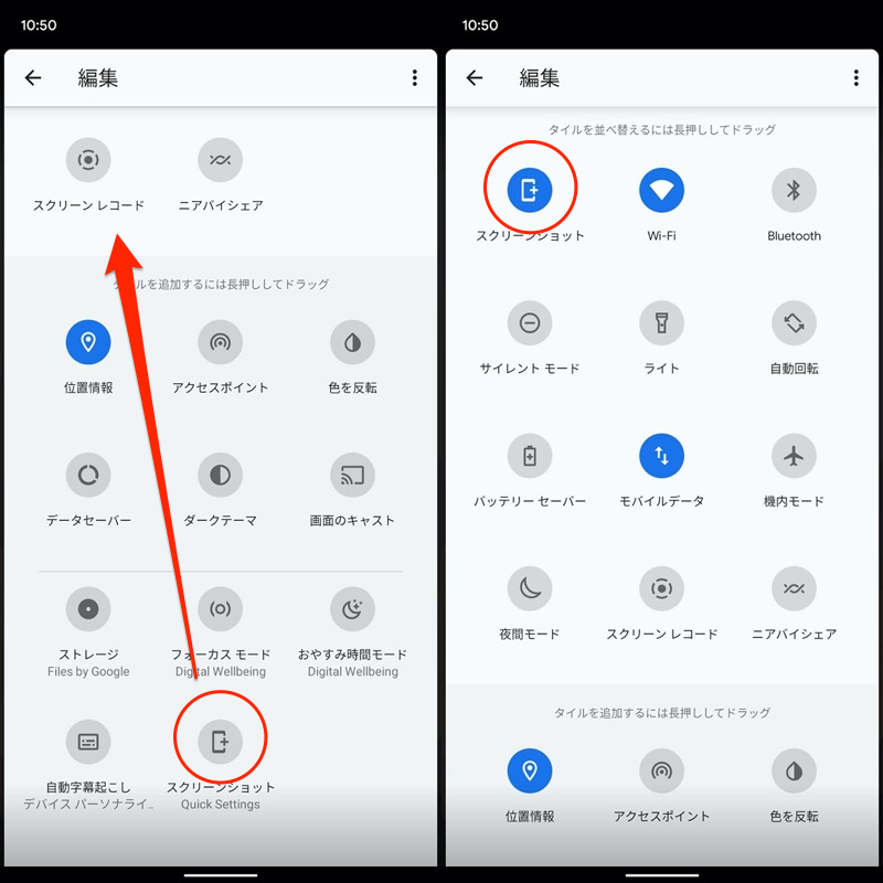 点击快速设置笔图标(左)打开编辑屏幕(右)。