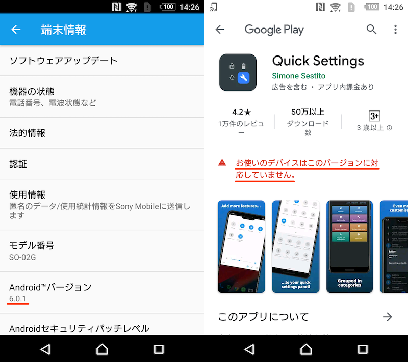 如果您的设备是 Android 6.x 或更低版本(左),您将无法首先获得快速设置(右)。