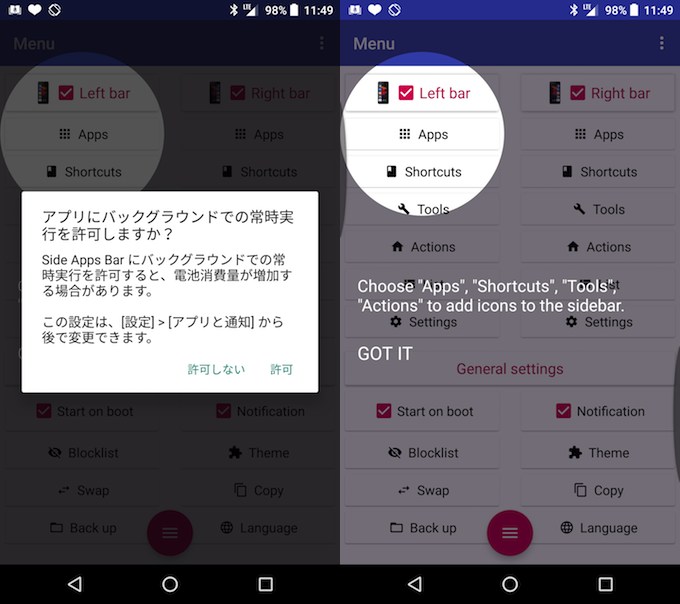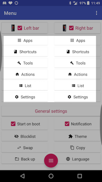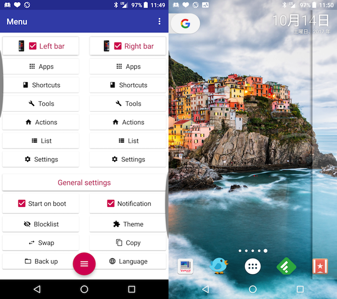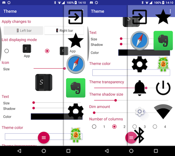 这两个应用程序都使您可以在屏幕的两端放置子标签,以控制您喜欢的应用程序和功能,使其成为一个有趣的应用程序,可极大地提高Android的可用性。