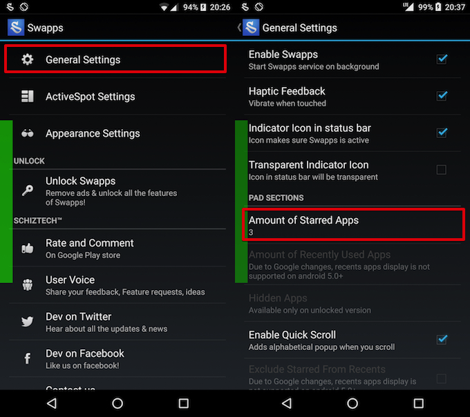 从“ Swapps!”的顶部屏幕上,转到“常规设置”,然后选择“星级应用程序的数量”。