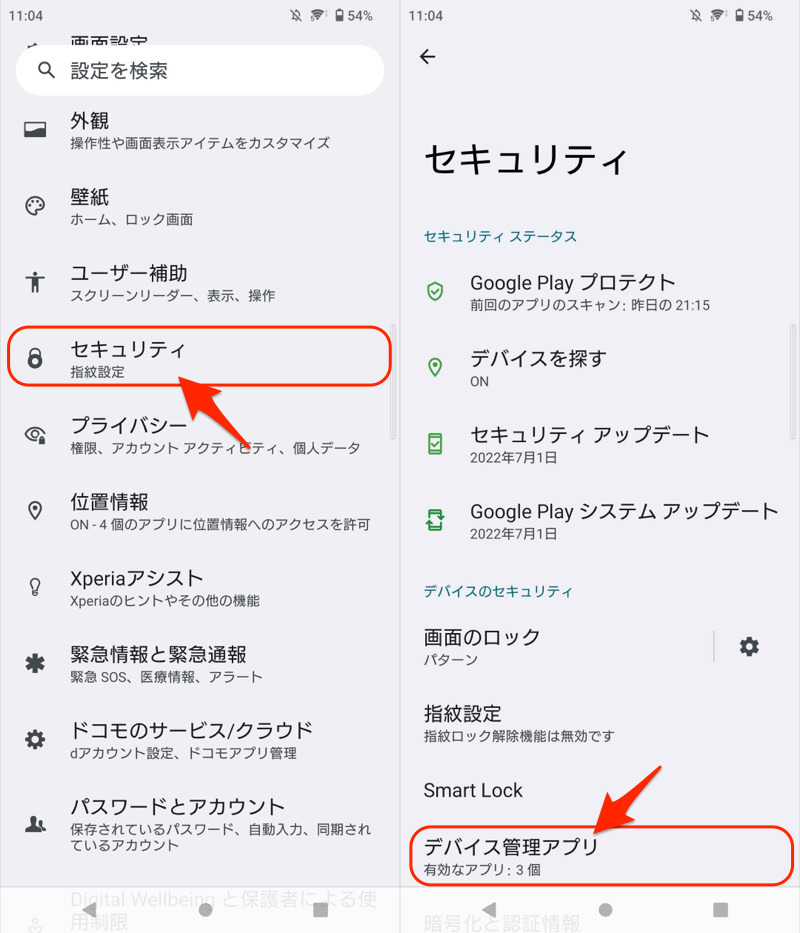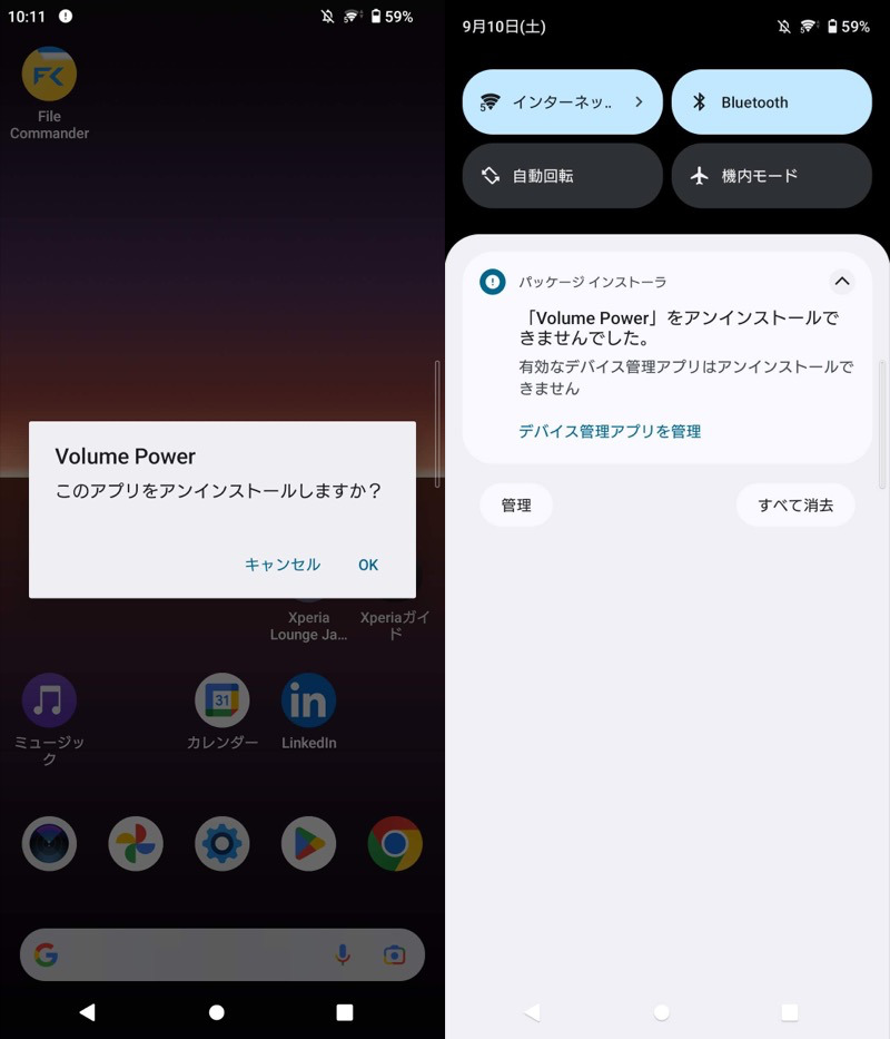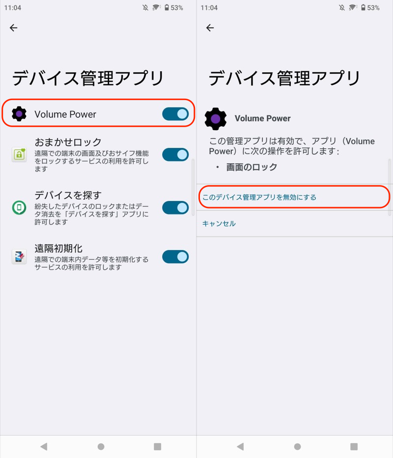 ●●(アプリ名)をアンインストールできませんでした。 有効なデバイス管理アプリはアンインストールできません