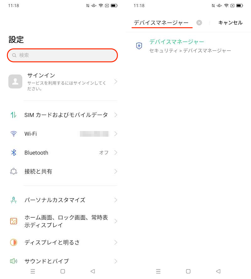 OPPO Reno3 A 示例。可以在“设备管理器”名称下找到。