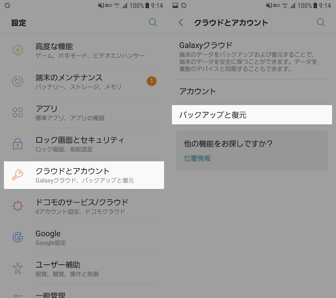 从“设置”→“云和帐户”中选择“备份和恢复”。