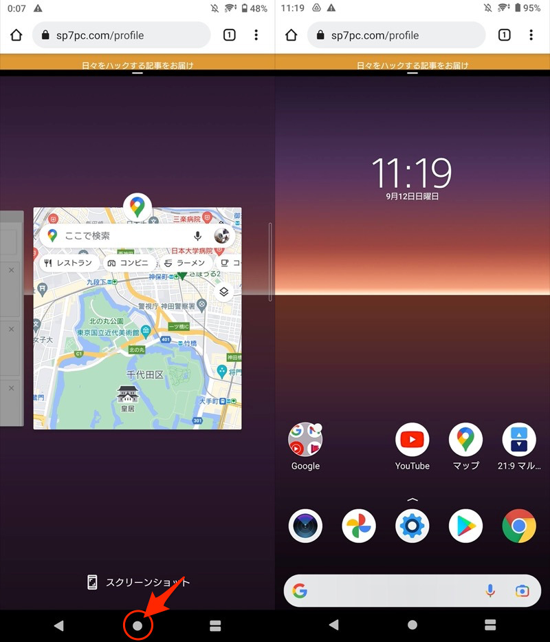 直到Android 8,导航栏上显示了三个按钮(◉Home / ◀Back / ■Recent),因此可操作性与现在有所不同。