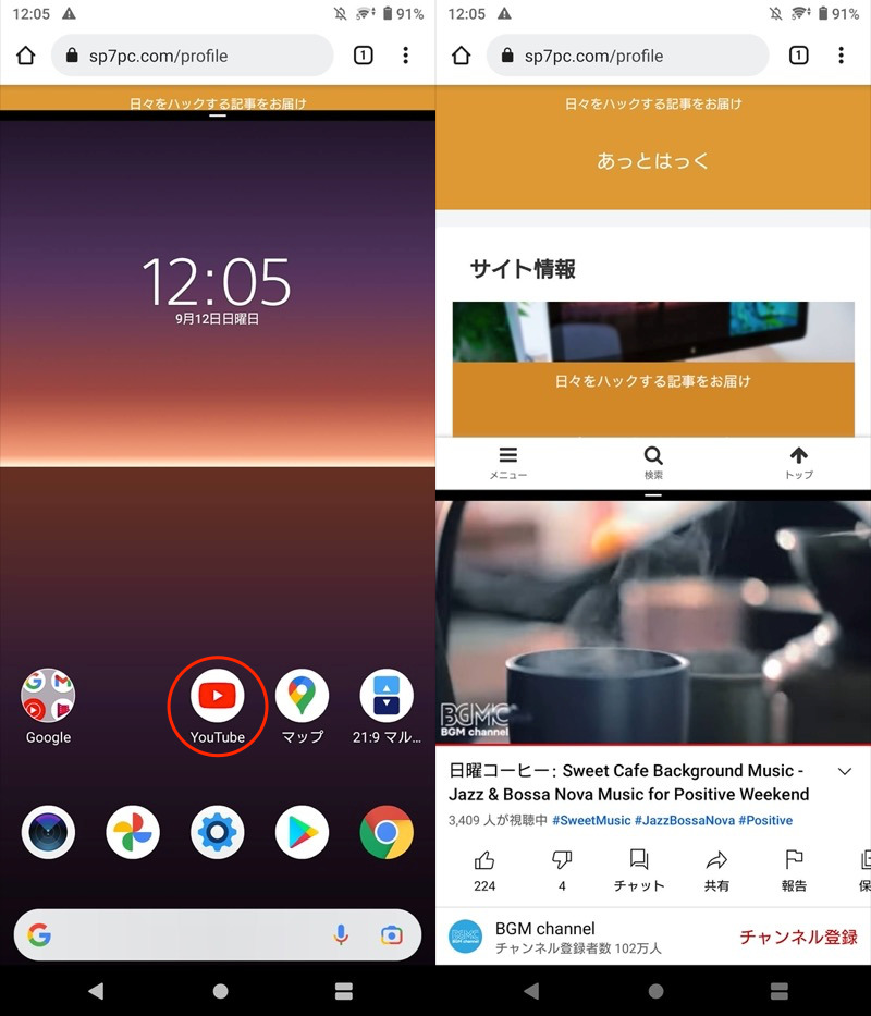 左侧是 PIPing YouTube,右侧是 Google 地图的示例。