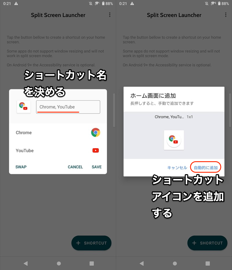 您所要做的就是确定快捷方式名称并在主屏幕上放置一个图标。