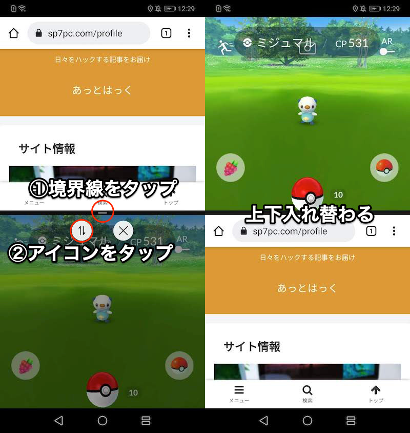 交换 Chrome 和 Pokemon GO 屏幕的示例。