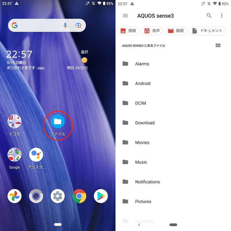 我们以 Xperia 10 II (Android 11) 的屏幕为例进行说明。如果您使用的是Android 8或更早版本的机型,说明将在后面部分进行说明(点击这里(点击即可跳跃)。