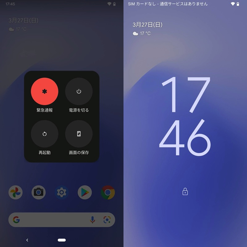 Pixel 3a XL 的示例。如果选择重新启动(左),主机将重新启动(右)。