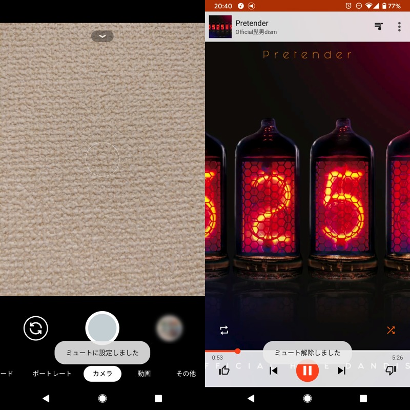 相机启动时静音(左),关闭相机时自动取消静音(右)。