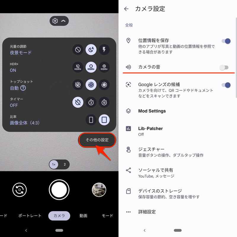 在 Google 相机的设置中相机声音此项已准备好,但在日文版中被删除。