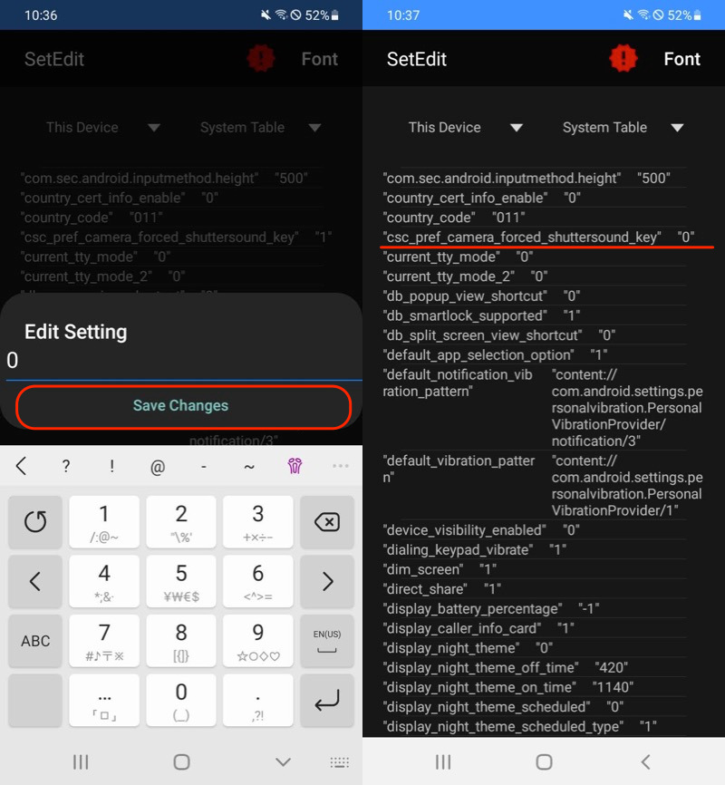 adb shell settings put system csc_pref_camera_forced_shuttersound_key 0