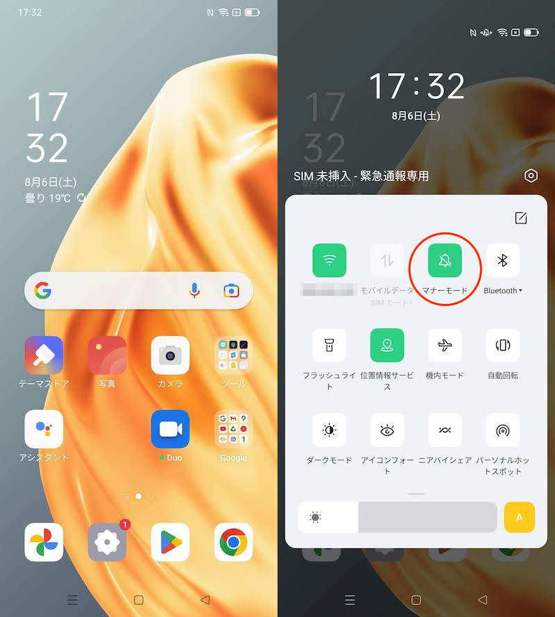 OPPO Reno3 A 切换静音模式示例。
