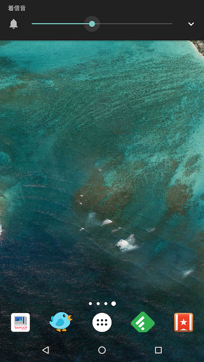 更改音量时的特征因型号而异,但例如,在 Nexus 6P (Android 8.1.0) 上,屏幕上会显示“响铃”图标。
