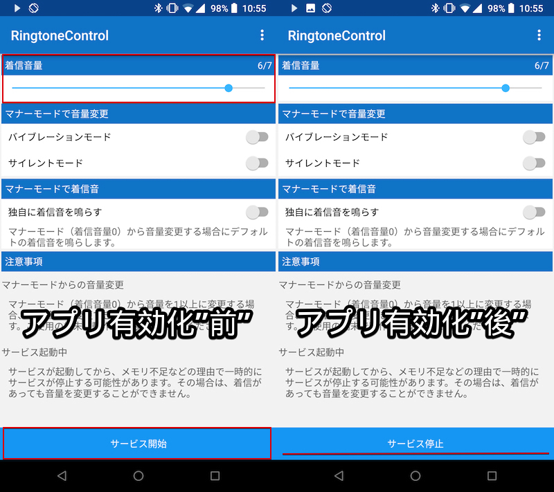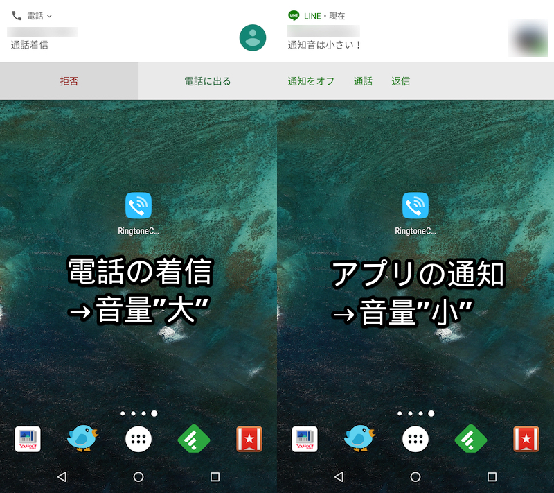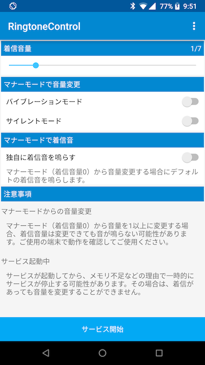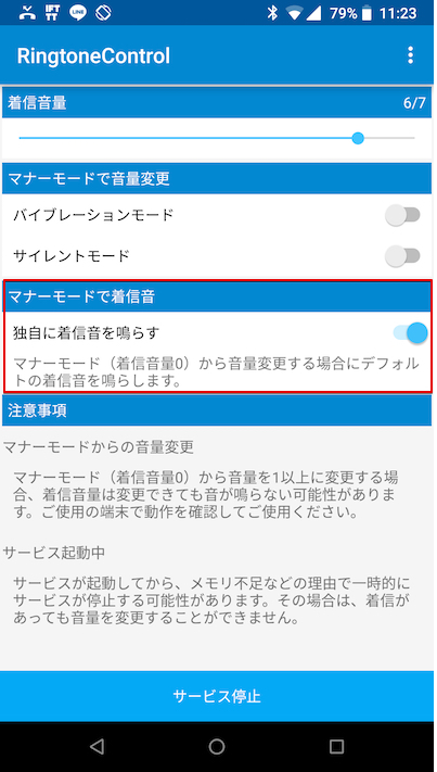 如上所述,可以在“RingtoneControl”中设置铃声音量(=手机铃声音量),而不受Android标准设置铃声音量(=应用程序通知音量)的影响。