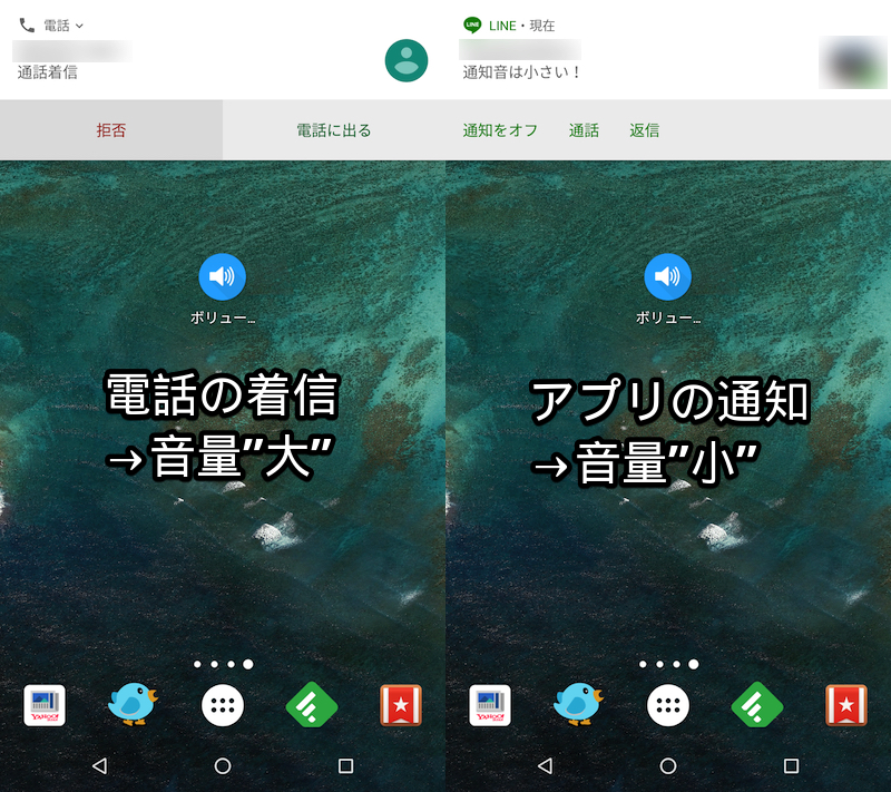 因此,例如,基本上不可能将电话的铃声音量设置得较高,而将LINE的通知音量设置得较低。