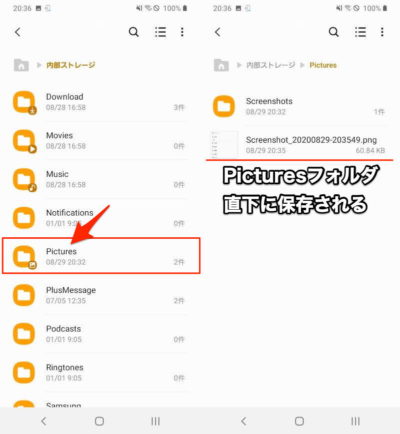 使用这种方法拍摄的照片基本上保存在内部存储直接下的“图片”中创建的“屏幕截图”文件夹中。
