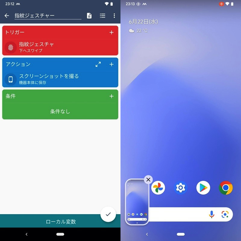 (左)宏示例(右)可以使用指纹手势进行屏幕截图