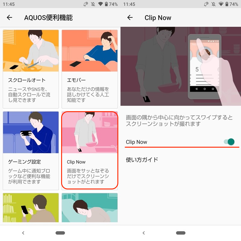 AQUOS系列标准安装立即剪辑使用 ,您只需从屏幕边缘“描画”即可截取屏幕截图。
