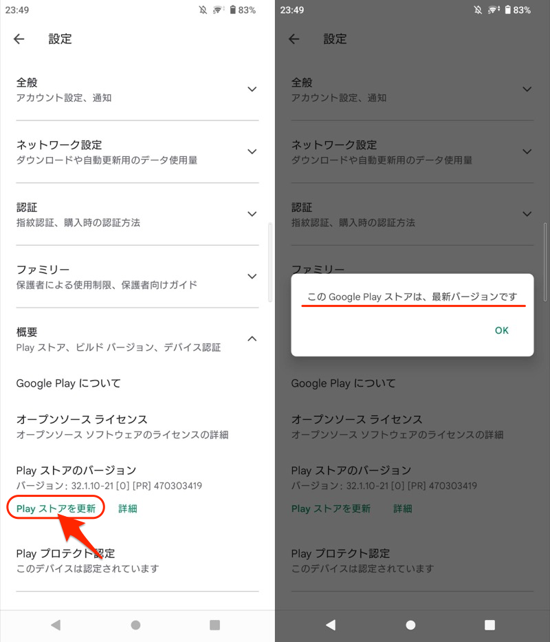 Google Playストアの新しいバージョンがダウンロードされ、インストールされます