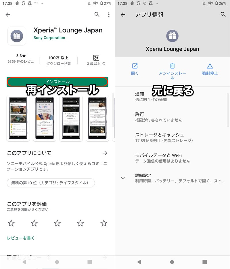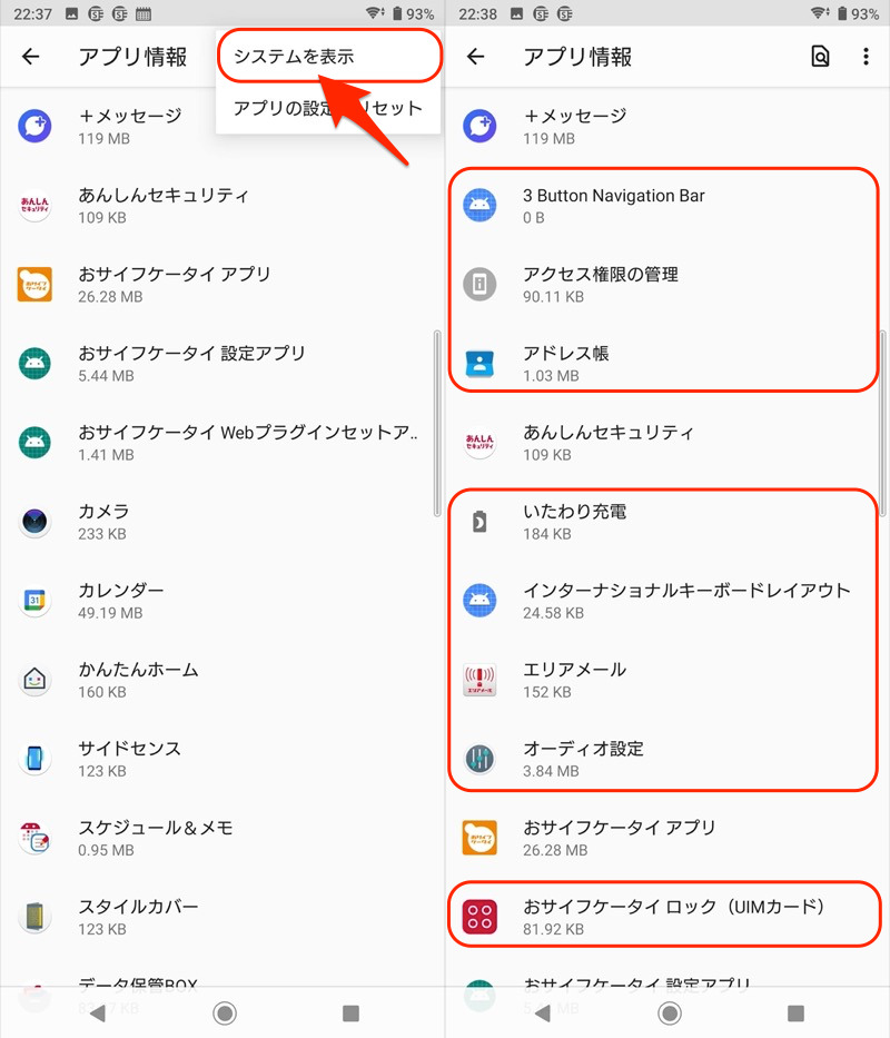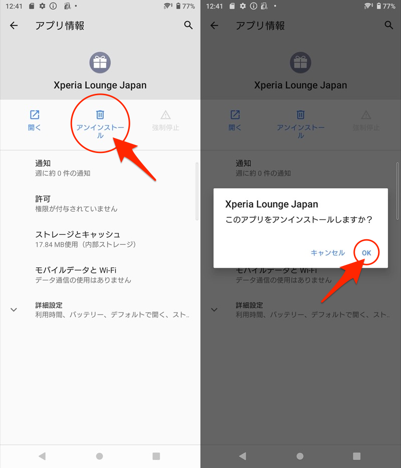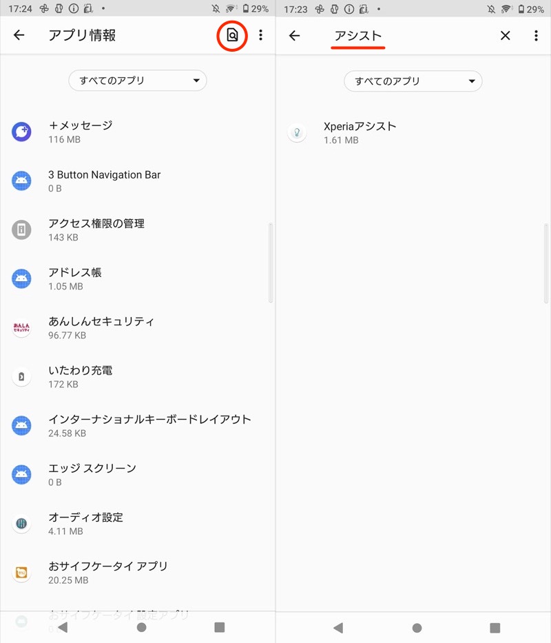 (左)禁用 Xperia Assist(右)删除 docomo Application Manager