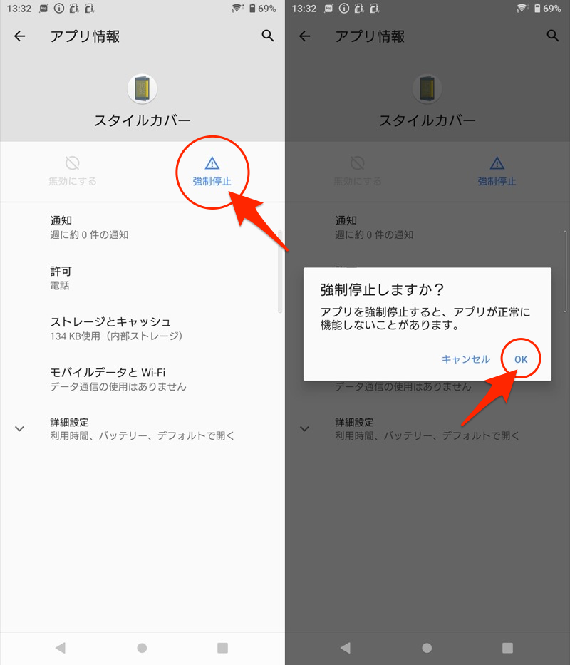 另一方面,强制停止是暂时停止应用程序运行的功能,并在一段时间后自动重新启动(图标不会消失)。