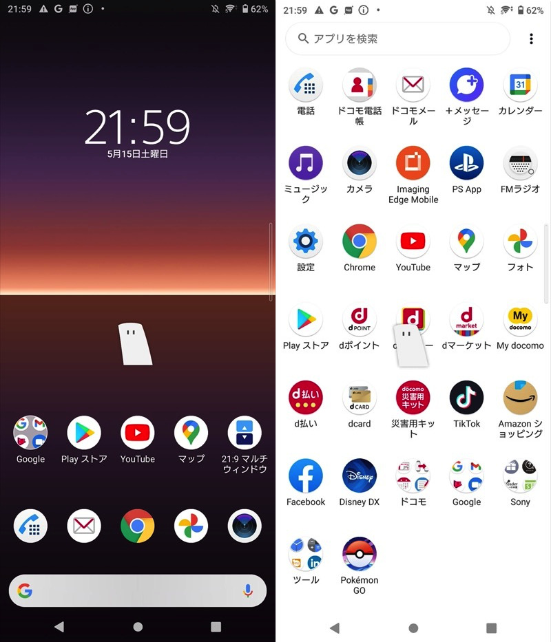 以 Xperia 10 II 为例。尤其是有很多与Docomo相关的应用程序。