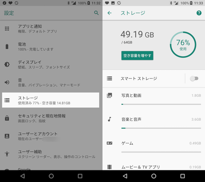 左:Nexus 6P (Android 7.1.2) / 右:Xperia X Performance (Android 7.0)