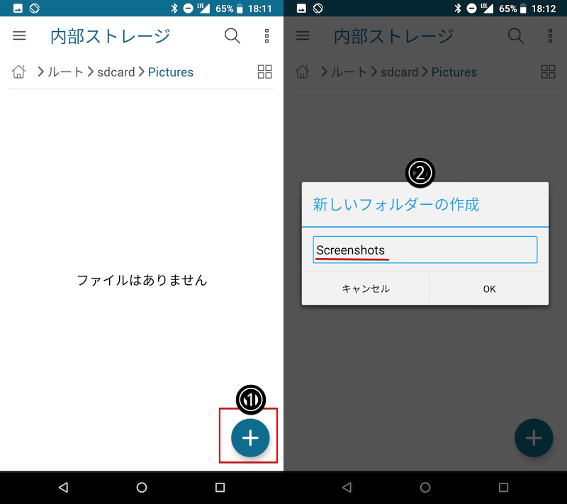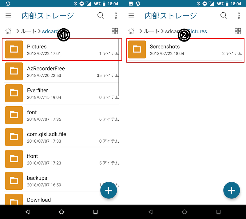 显示内部存储,如果找不到“Screenshots”文件夹,请在相应目录中创建一个新文件夹。