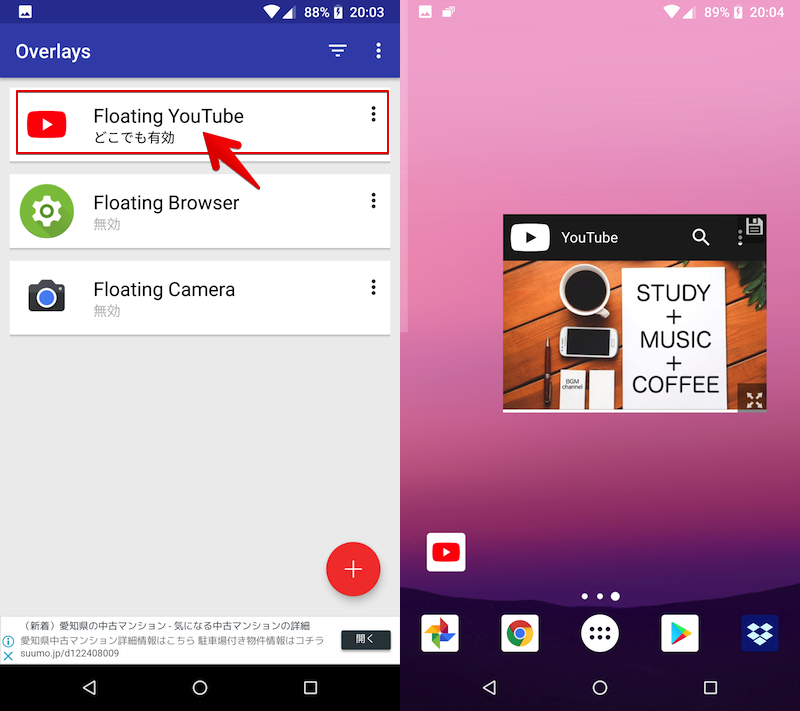 “Floation YouTube”还允许您继续在前视图中播放视频,例如“画中画”。
