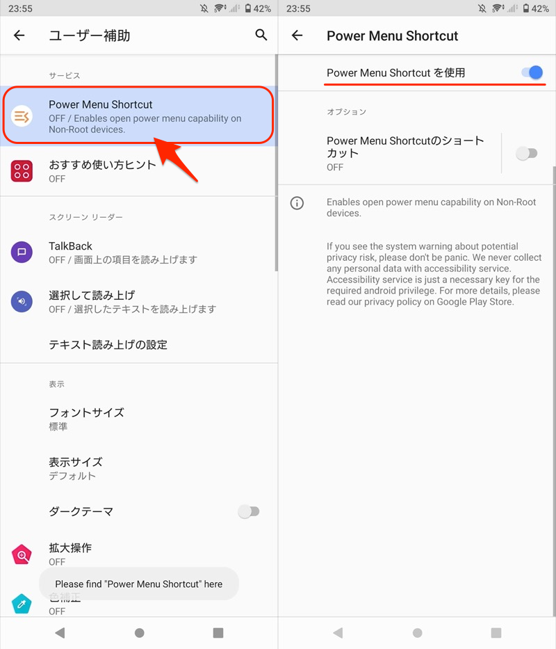 Android 上的标准配置辅助功能用于在不触摸电源按钮的情况下显示电源菜单。