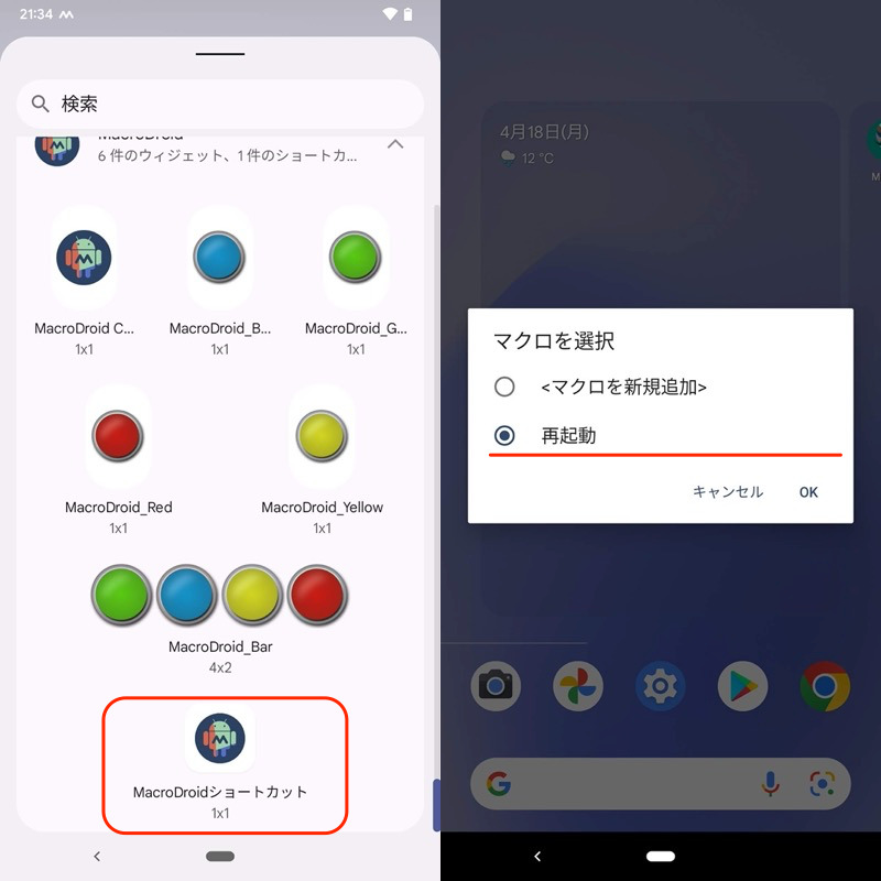 选择合适的名称并保存宏后,从主屏幕创建一个新的小部件,