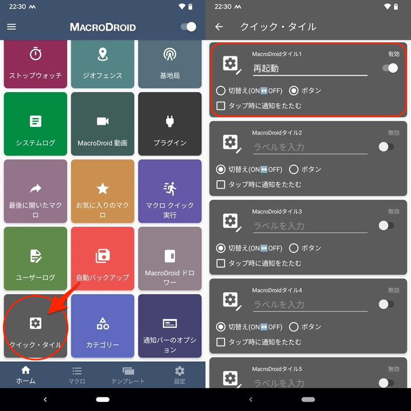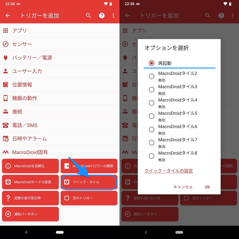 MacroDroid固有→快速瓷砖选择您之前创建的图块。
