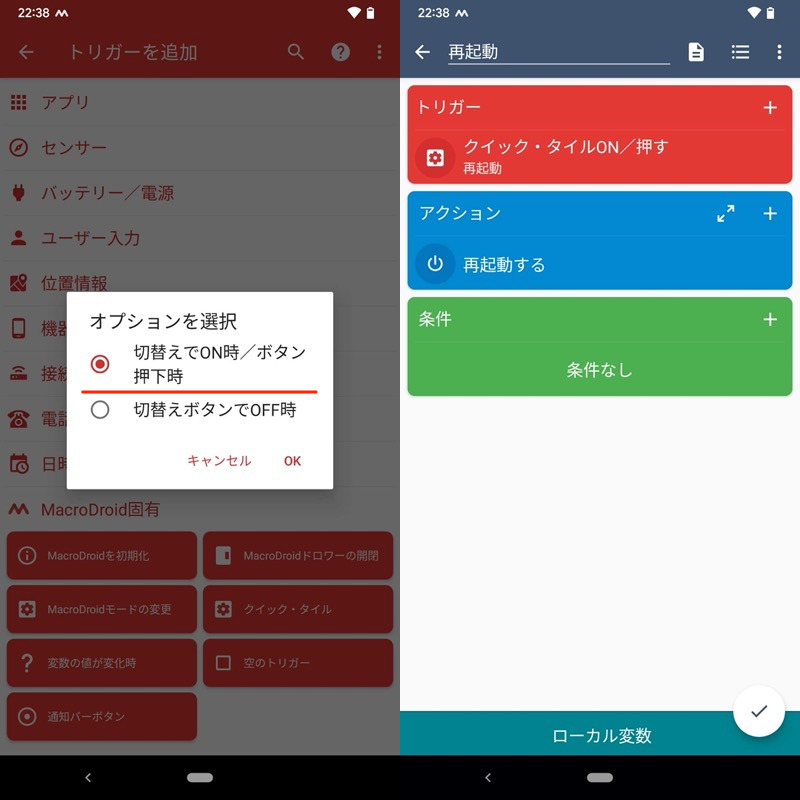 MacroDroid - 使用您喜欢的任何操作打开电源菜单
