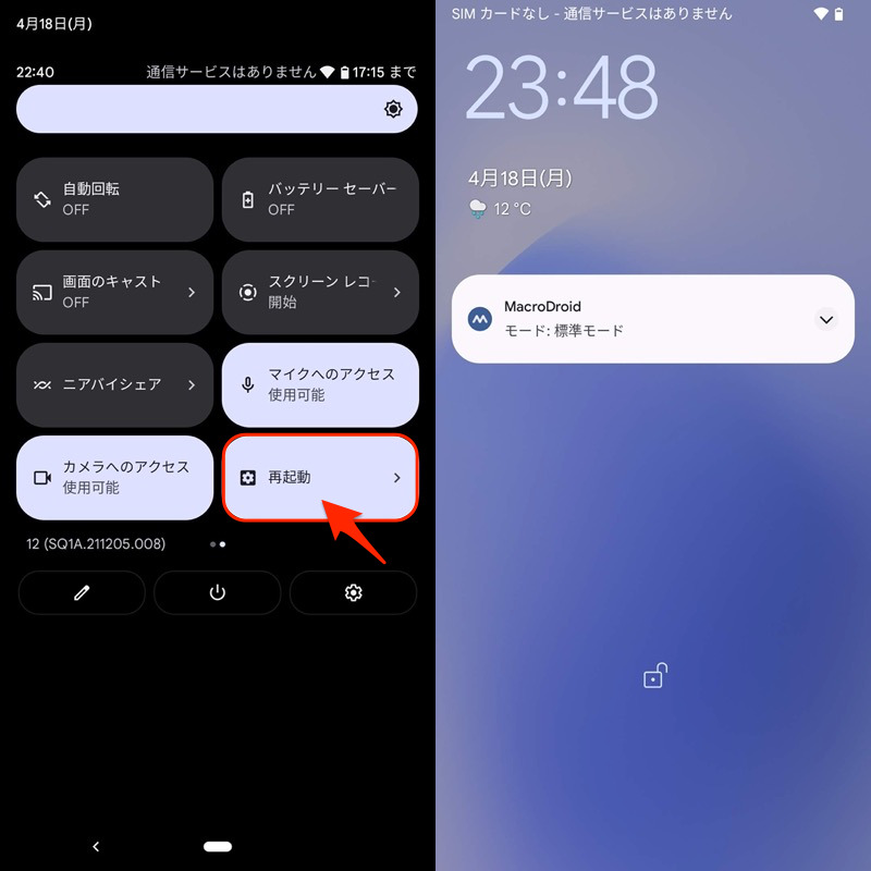 只需点击快速设置面板中的图块即可立即重新启动您的设备。