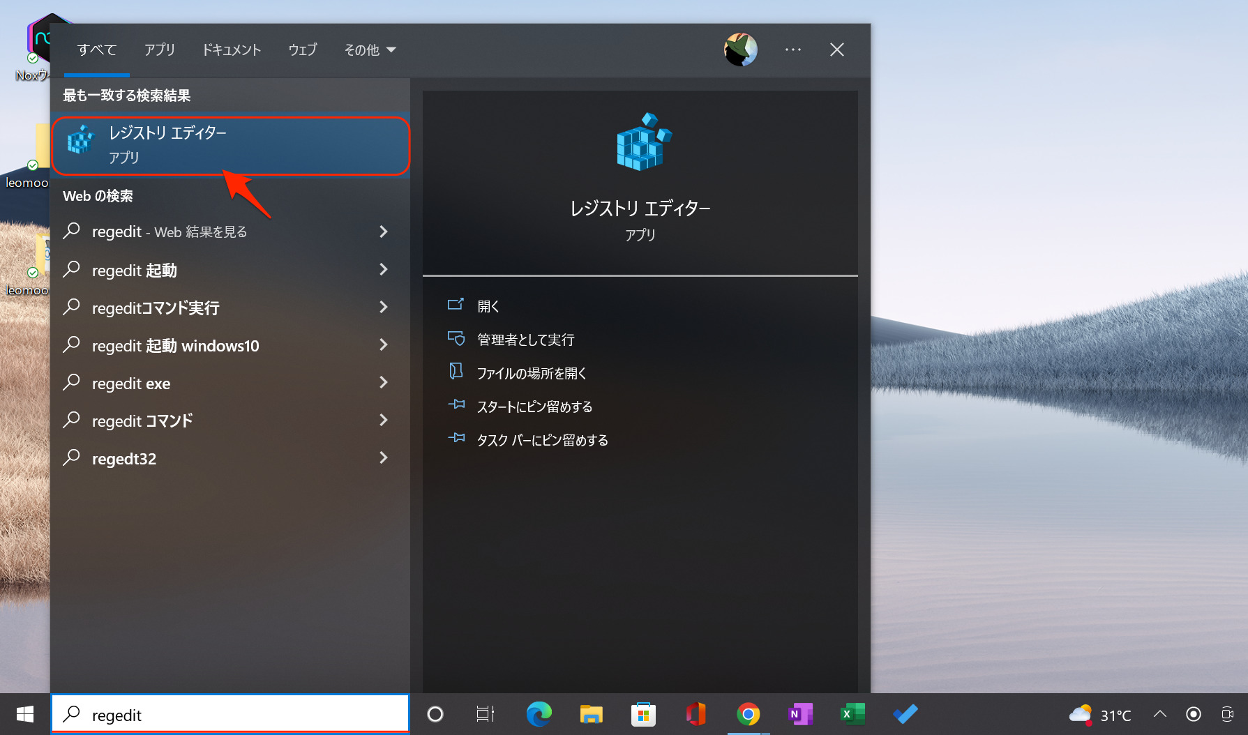 您可以通过在任务栏上的搜索框中键入“regedit”来找到它。