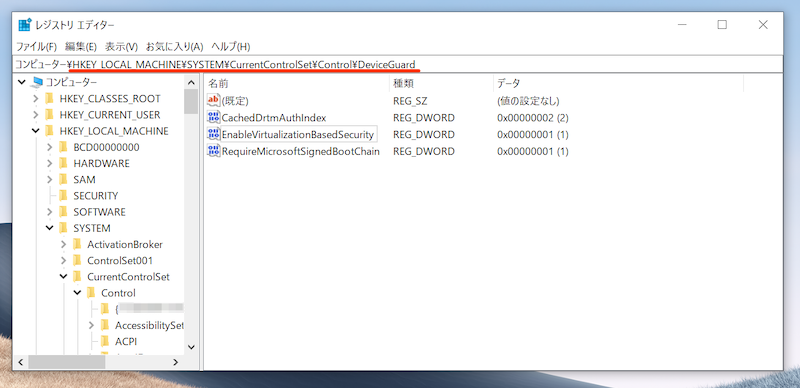 HKEY_LOCAL_MACHINE\SYSTEM\CurrentControlSet\Control\DeviceGuard