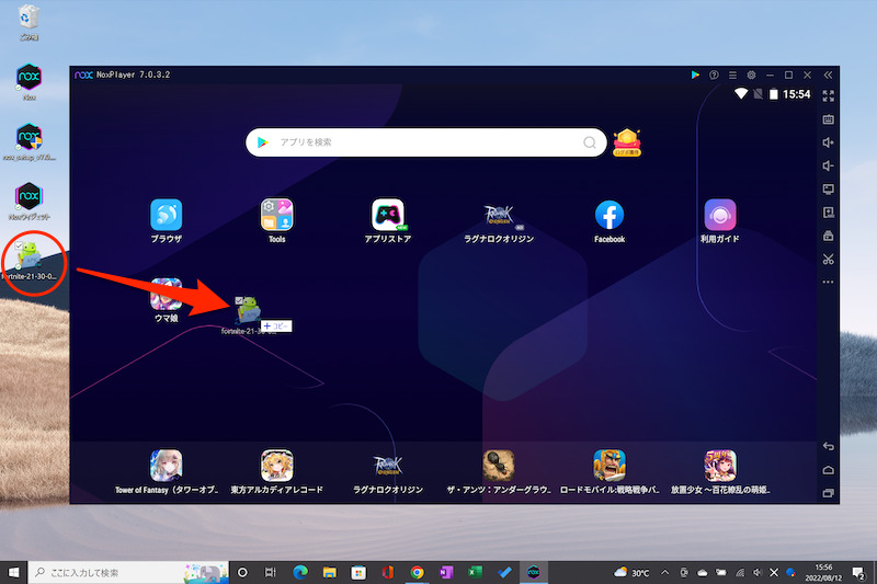 将计算机上保存的 apk 文件拖放到屏幕上。