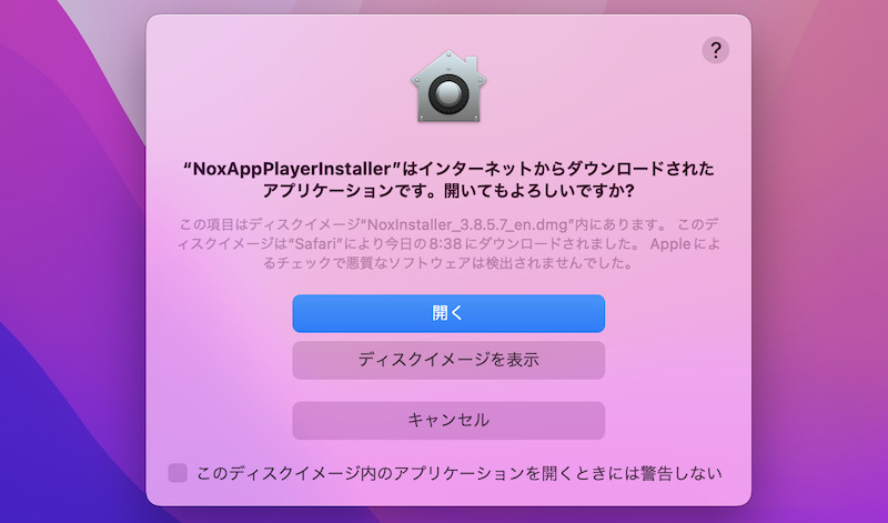 根据 Mac 环境,可能会显示一条消息,但它会继续打开。