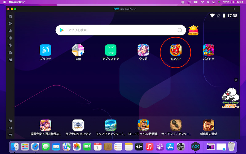 安装 Monster Strike 的示例。主屏幕上将出现一个图标。