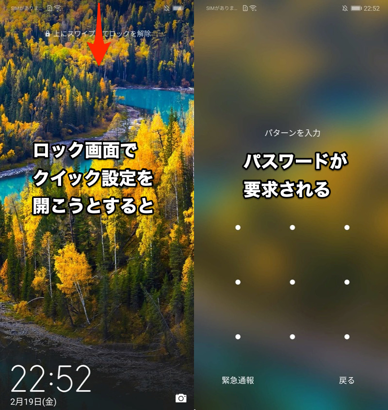 另外,对于HUAWEI P20 lite,如果您尝试在锁定屏幕上打开快速设置面板,则需要密码。