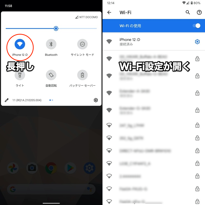 无线网络示例。您可以通过长按该图标来访问 Wi-Fi 设置。